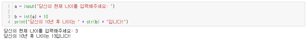 - 3. 나이 입력받아 10년 후 나이 출력하기